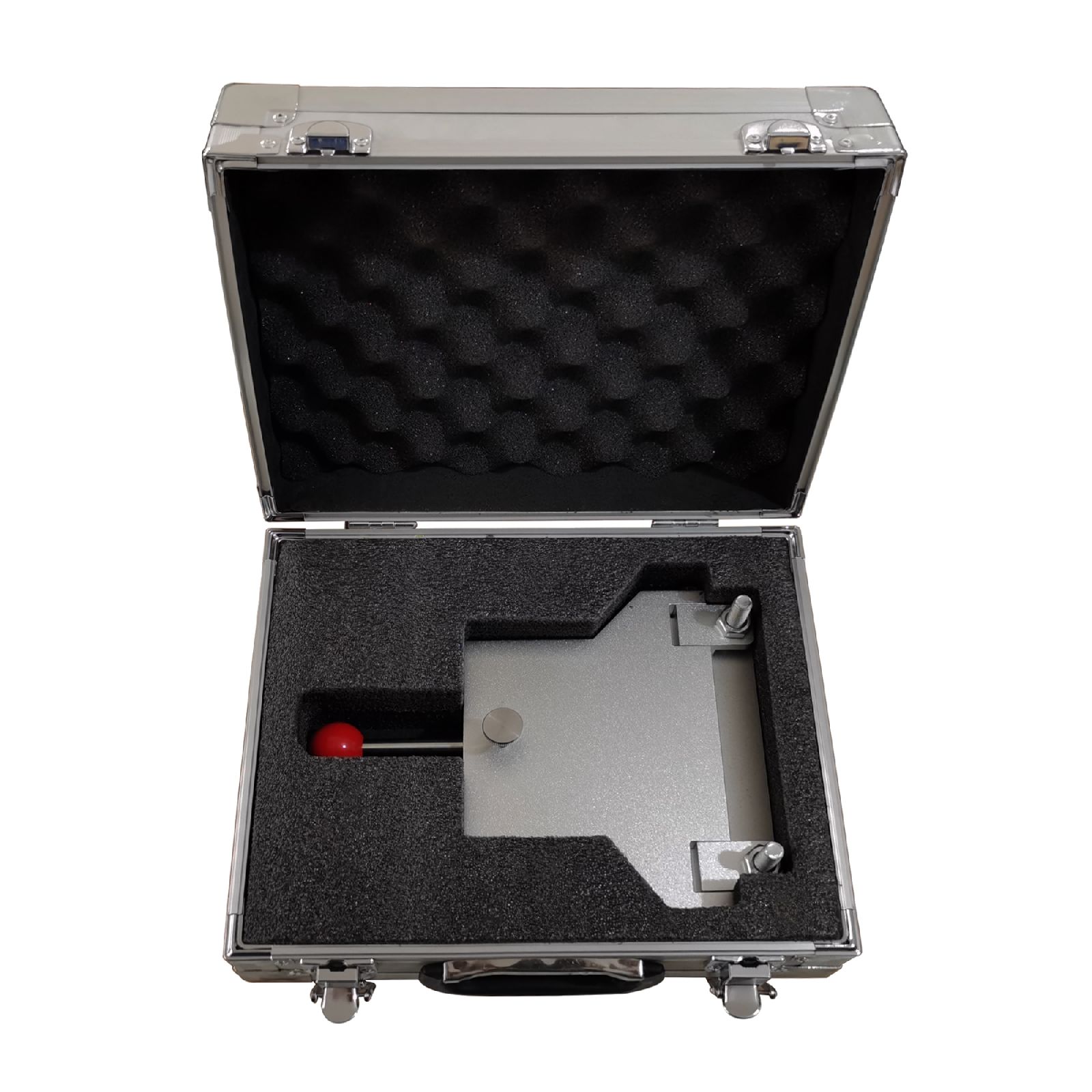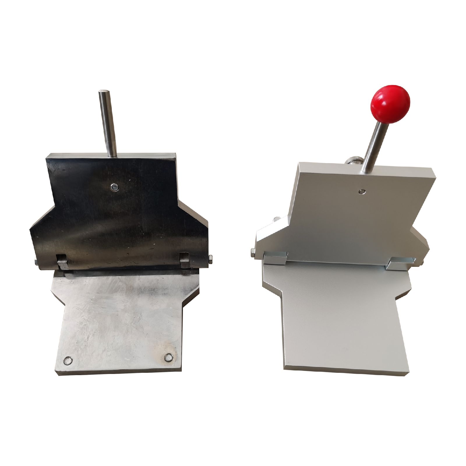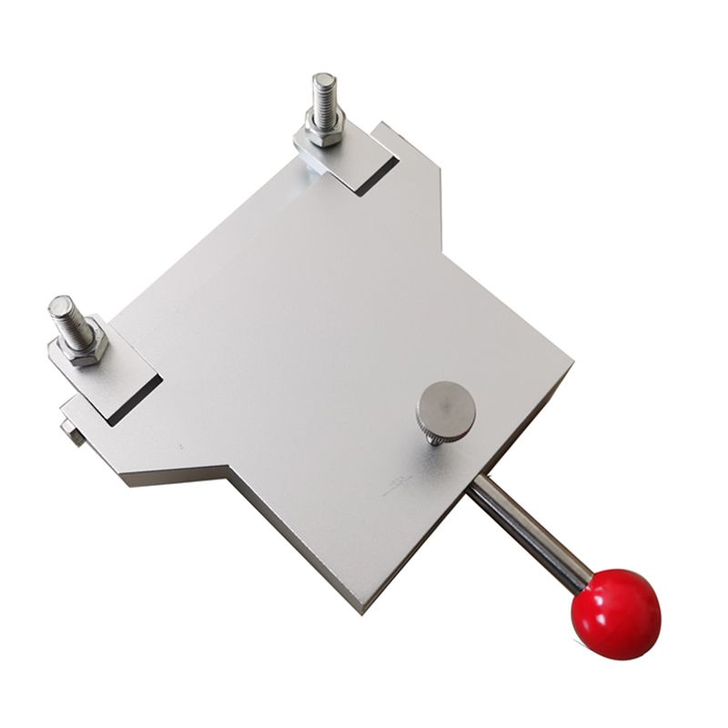 4、将折弯仪上下平板翻开,将试样平放在上下平板上,重合的一边朝向转轴,且距离转轴20mm、(或25mm)